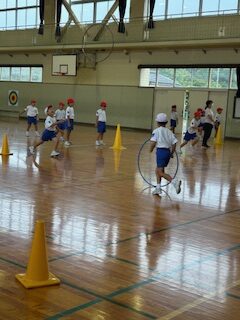 2025.9.25 2年生 2年生 いろんな動きを修行中 2年生は、体育の時間に学習した様々な動きを学習発表会で披露する予定です。 今日も、いろんな動きを修行中。 フラフープのおもしろさに触れながらの修行もしていました。 みんなと一緒に楽しく頑張っています。