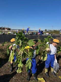 2025.11.20 1年生 2年生 1,2年生 かぶの収穫体験 1,2年生は、高岡市農業水産課の小学校児童による収穫体験事業に応募し、 今日、かぶの収穫体験に行ってきました。 校区のかぶ畑で、一人2個、収穫しました。 家に持ち帰って、おいしいかぶ料理にしてもらってください。 明日の給食には、今日、収穫したかぶを使った献立があります。 お楽しみに。