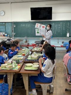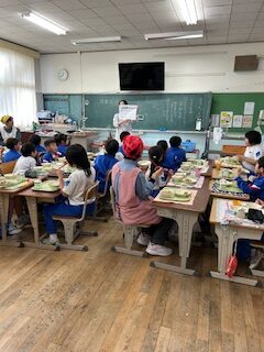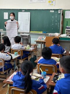 学校の栄養士さんが、1年生と2年生の教室を回って、かぶの話をしてくださいました。