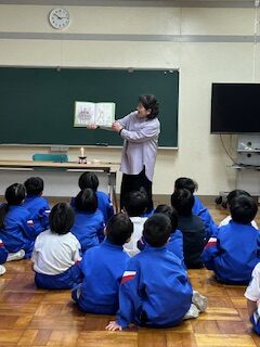 2025.12.11 1年生 2年生 1,2年生 おはなし会 今日は、高岡おはなしの会の方(中田保育園の園長先生)のおはなしを聞きました。 おはなし会は、ろうそくの灯がついている間に行われます。 日本や外国の昔から伝わっているお話を聞きました。 お話を覚えて語ってくださる(素話)ので、子供たちはすっかり引き込まれていました。