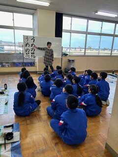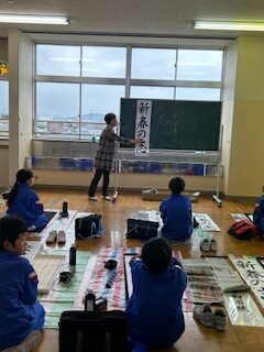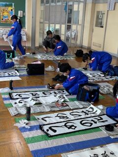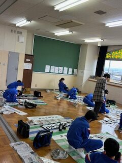 2025.12.15 3年生 6年生 3,6年生 書初め練習 今日は、書初めの先生に来ていただき、練習を見てくださいました。 太く、元気いっぱいに書いてください、というアドバイスを受けて、 子供たちは、思い切り筆を走らせていました。 この後の学校での練習、そして、冬休み中の練習の機会を大事にして、 どんどん上達してほしいと思います。