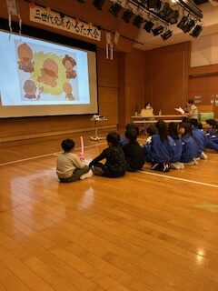 かるたの後は、中田地区のことがよくわかる紙芝居を読んでいただきました。