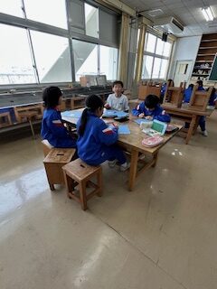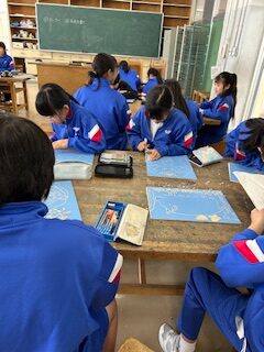 自分のお気に入りの動物を描いて、彫刻刀で彫っています。