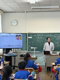 2026.1.27 4年生 4年生 地産地消の給食 給食週間2日目。 今日の献立は、地産地消メニューでした。 そこで、総合の時間に環境について学習した4年生に、栄養士さんが地産地消のよさについて 話をしてくださいました。 これからの給食でも、地産地消を意識してみましょう。