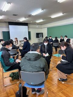 2026.2.6 全校生 今年度最後の学習参観日 学習参観日に、たくさんの保護者、家族の方に来校していただきました。 1年生の保護者の皆さんは、「親学び講座」にも参加していただきました。 和やかな雰囲気で、子育てで悩みそうな場面について様々な意見が出されていました。
