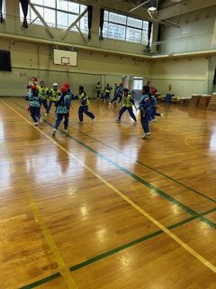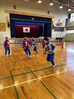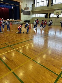2026.2.25 4年生 4年生 タグラグビー 先週は、インフルエンザで欠席が多かった4年生。 すっかり元気になって、今日は、体育でタグラグビーをしていました。 腰に付けたタグを取られないように気を付けながら、ボールを運んでいます。