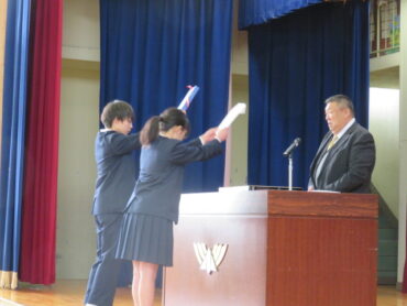 2026.3.2 NEW 6年生 6年生 同窓会入会式・PTA卒業記念品贈呈式 卒業式まで登校する日が10日となった今日、同窓会入会式とPTA卒業記念品贈呈式が 体育館で行われました。 同窓会会長さん、PTA会長さんが来校され、激励の言葉をいただきました。 また、同窓会入会記念として、卒業証書ホルダーを、 PTAからの卒業記念品として、校訓の印字付きシャープペンシルを 贈っていただきました。 卒業に向けての気持ちを一段と高めた6年生でした。