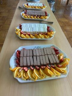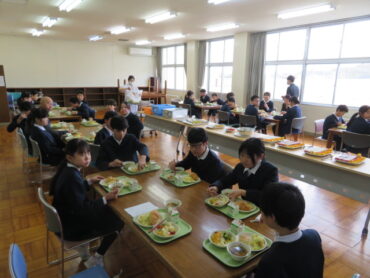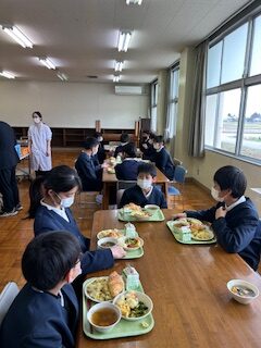 2026.3.4 NEW 6年生 6年生 卒業ランチ 6年生は、ランチルームで、卒業ランチを行いました。 授業に出ていただいた先生方との会食。 そして、いつもとは違うバイキング形式のランチに、子供たちは大喜び。 デザートも、豪華です。 食べ盛り、食欲旺盛な6年生。 6年間で、食べられる量も増えましたね。 いろんな話をしながら、あっという間に時間が過ぎていきました。 また一つ、中田小学校での楽しい思い出ができましたね。